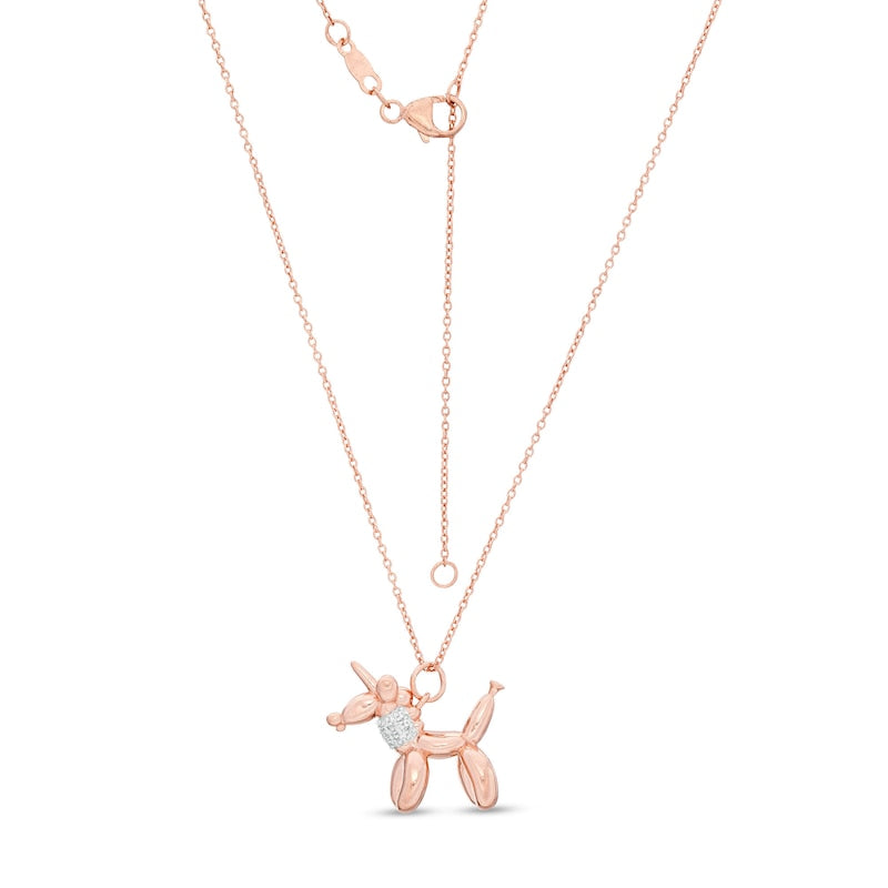 0.05 CT. T.W. Natural Diamond Balloon Unicorn Pendant in Sterling Silver with 14K Rose Gold Plate