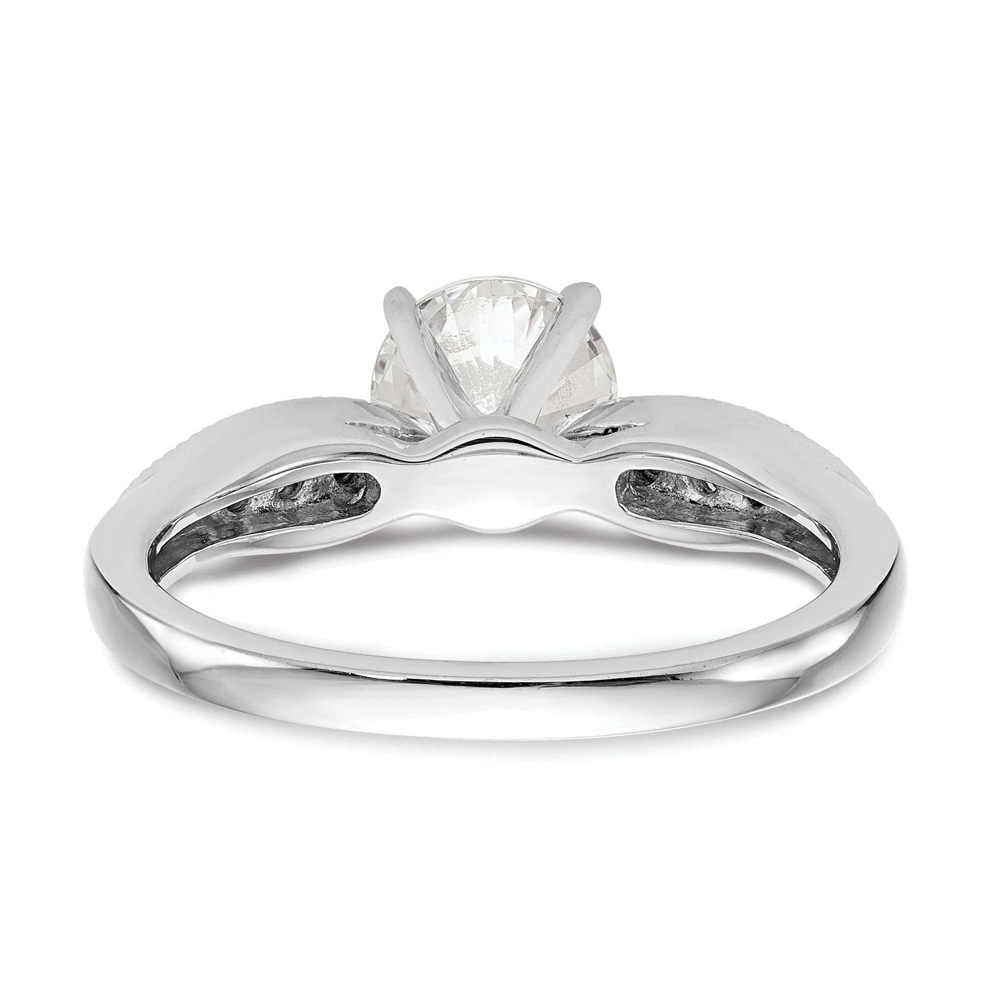 Finally, the band width of this ring is 2.7 to 2.1 mm (tapered), making it a comfortable fit for daily wear. It features round-shaped stones perfectly cut to a standard size of 6.5 mm for the center stone and 1.7 mm, 1.4 mm, and 1.1 mm for the accompanying stones. The plating is rhodium and the stone clarity is I1 (AA). Invest in our exceptional engagement ring today and take your love to greater heights!