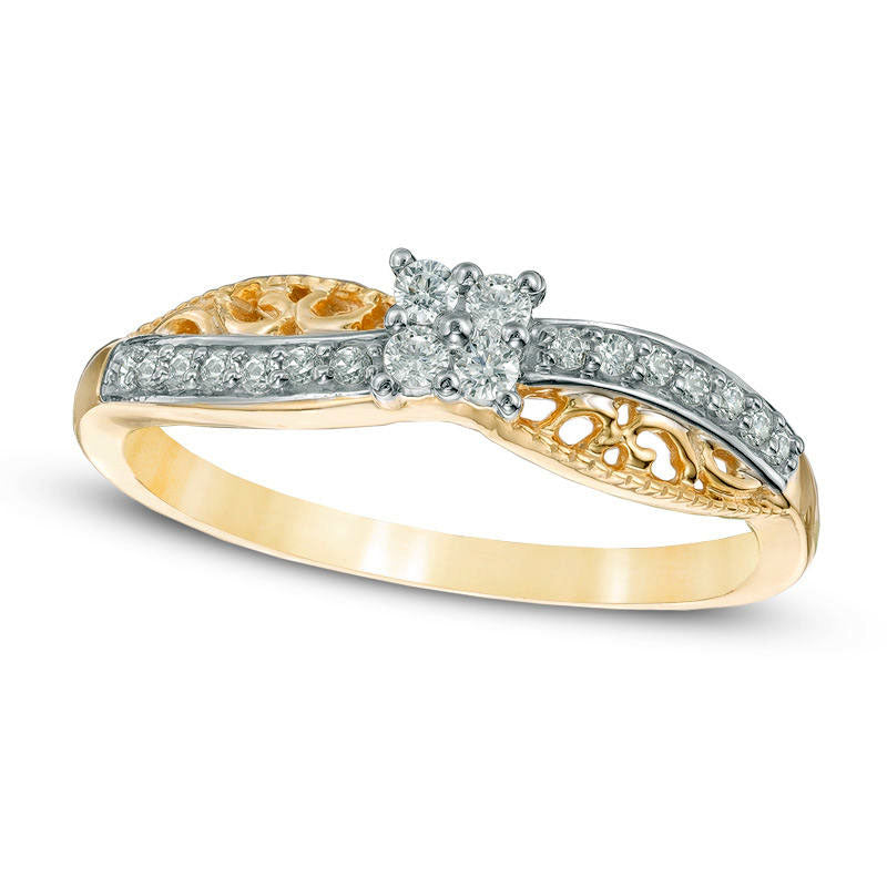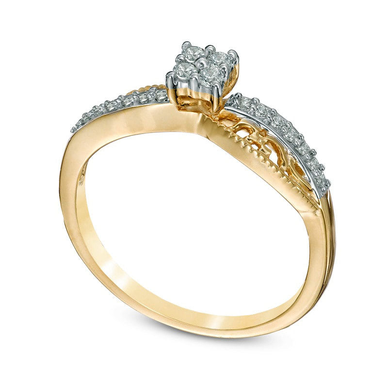 0.17 CT. T.W. Quad Natural Diamond Swirl Promise Ring in Solid 10K Yellow Gold