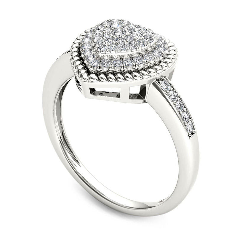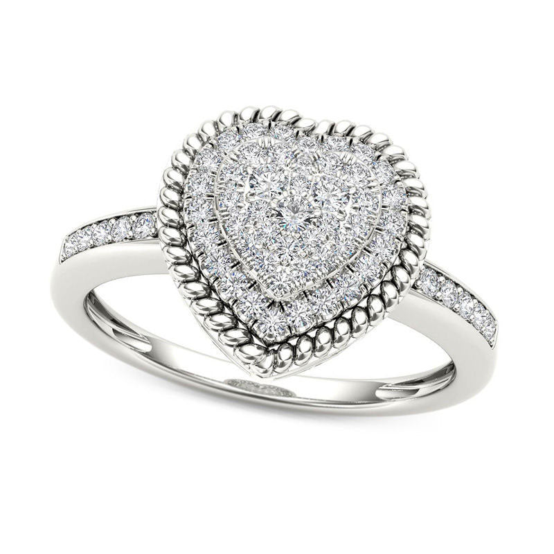 0.25 CT. T.W. Composite Natural Diamond Heart-Shaped Rope Frame Ring in Solid 10K White Gold
