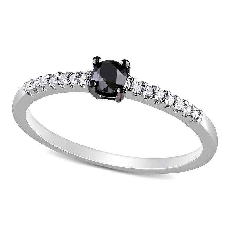 Surprise your loved one with this stunning diamond promise ring that celebrates your commitment. Crafted in 10K white gold, this bold design features an enchanting 1/6 ct. enhanced black diamond atop a graceful white diamond-lined band. With a total diamond weight of 1/4 ct. and a dazzling shine, this promise ring is a beautiful display of your love. Its sleek and elegant design is sure to capture the heart of your loved one.