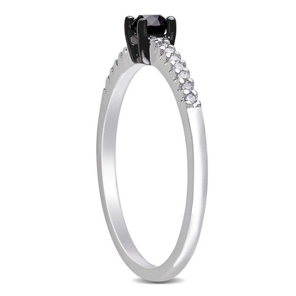 0.25 CT. T.W. Enhanced Black and White Natural Diamond Promise Ring in Solid 10K White Gold