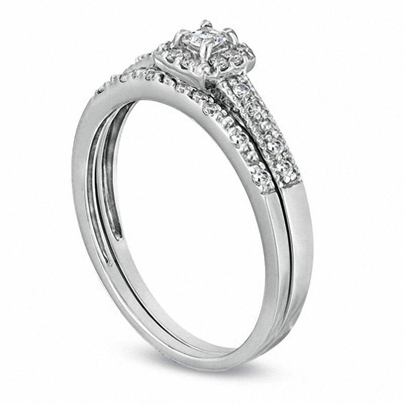 0.25 CT. T.W. Princess-Cut Natural Diamond Frame Bridal Engagement Ring Set in Sterling Silver