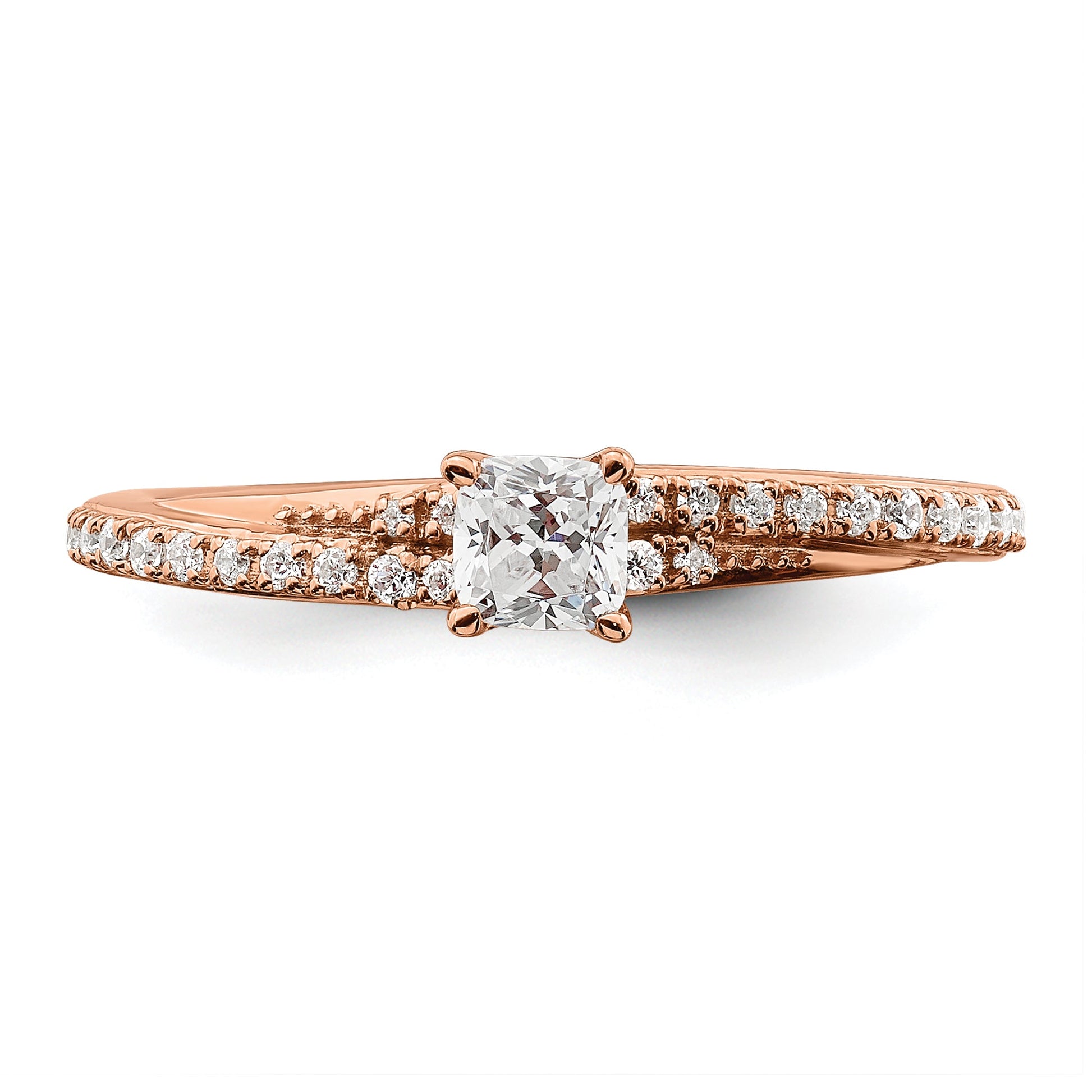 Whether you're looking for a vacation-safe, everyday, or promise ring, this 0.33ct. CZ Solid Real 14K Rose Gold Polish Complete Cushion Dia. Engagement Ring is the perfect alternative to natural earth-mined diamonds. Upgrade to the stunning look of a diamond at a fraction of the cost.