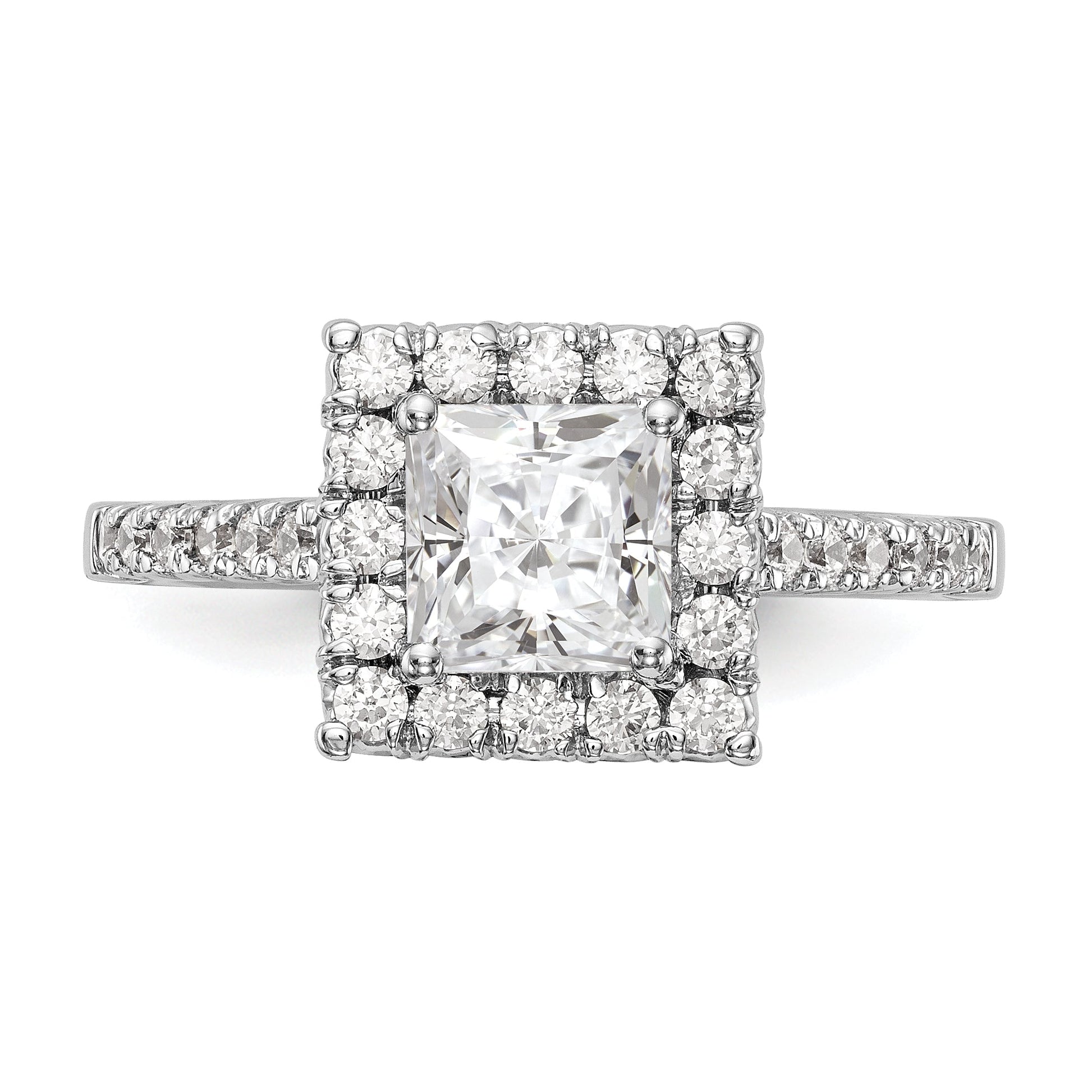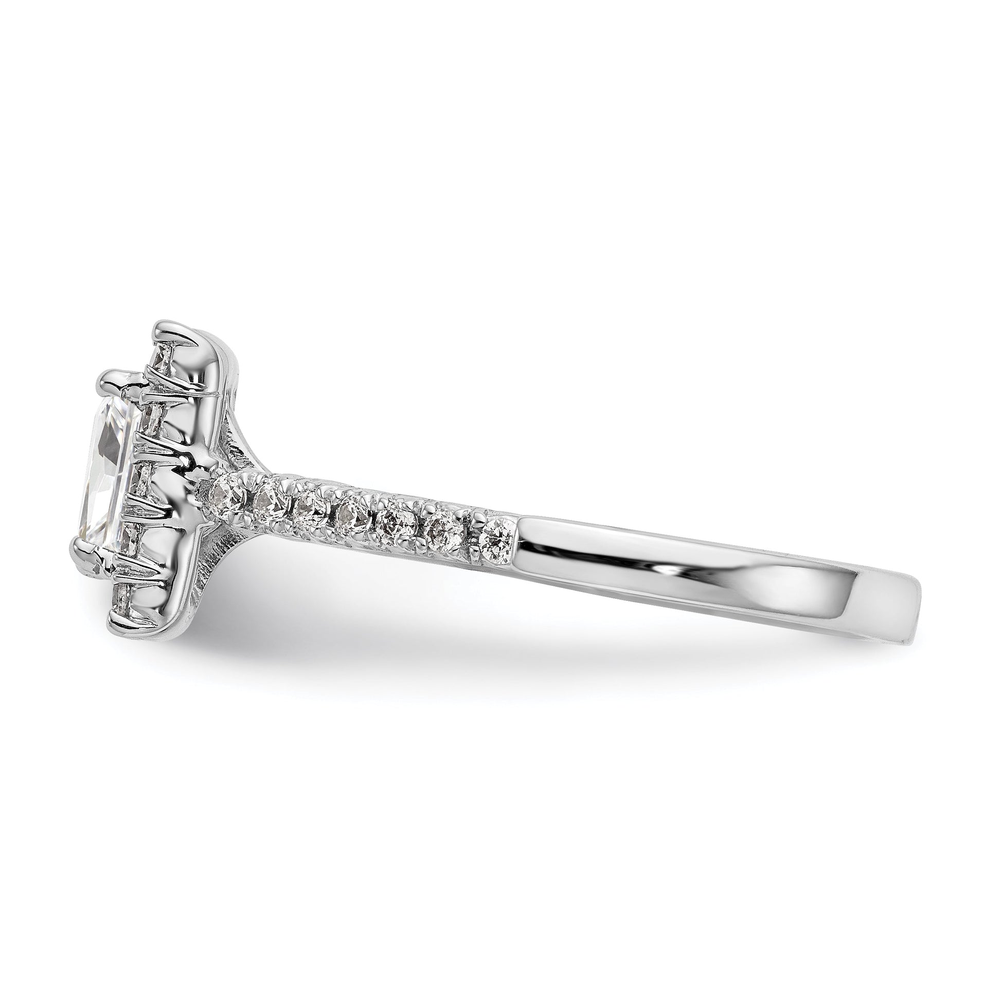 Your purchase is backed by a 30-day, hassle-free, money-back guarantee and comes with a complimentary gift box. We pride ourselves on superior customer service and are a USA-based company. The ring is available in 14K white, yellow, or rose gold for the same price, and ranges in size from 6 to 8 (with incremental sizing adjustments of 0.25). The center stone weight is 0.37 ct and there are 30 surrounding CZs weighing 0.01 ct each. The ring is a princess head type with 4 prongs and comes in a polished finish.