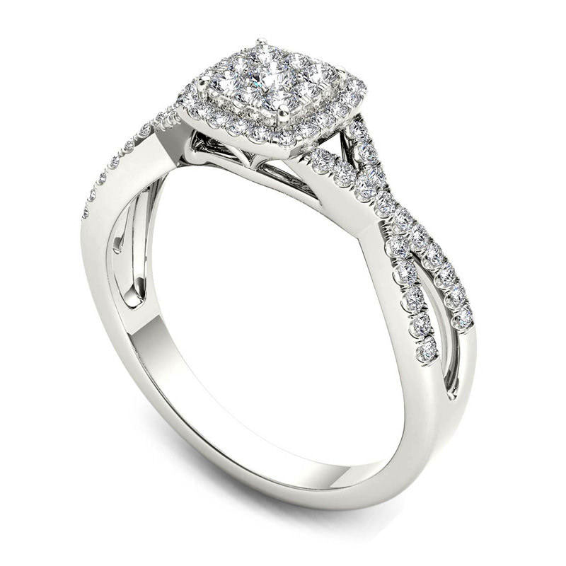 0.38 CT. T.W. Composite Natural Diamond Square Frame Crossover Engagement Ring in Solid 14K White Gold