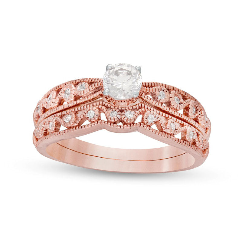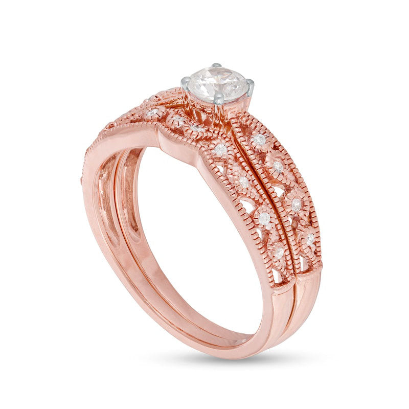 0.38 CT. T.W. Natural Diamond Antique Vintage-Style Filigree Bridal Engagement Ring Set in Solid 10K Rose Gold
