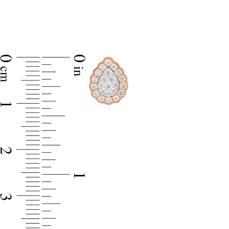 0.5 CT. T.W. Composite Teardrop Diamond Scallop Frame Vintage-Style Stud Earrings in 10K Two-Tone Gold