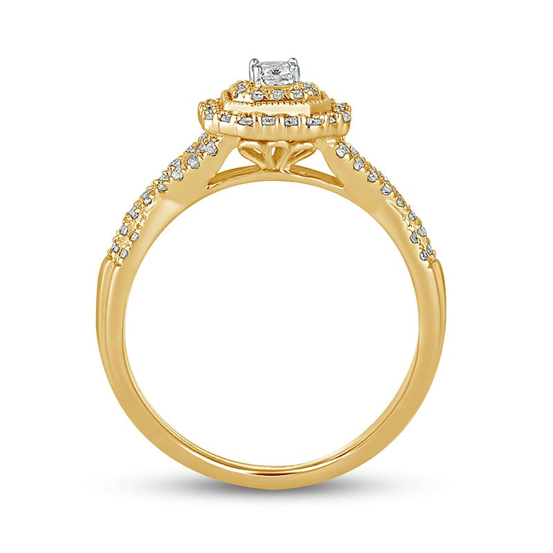 The 1/2 CT. T.W. Emerald-Cut Diamond Frame Vintage-Style Multi-Row Engagement Ring in 10K Gold exudes a romantic aura that'll make any heart flutter. The warm 10K gold adds to its...
