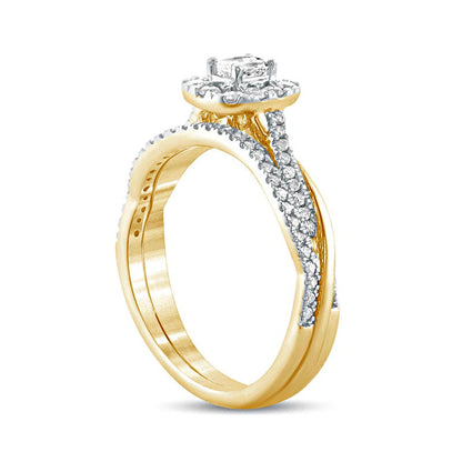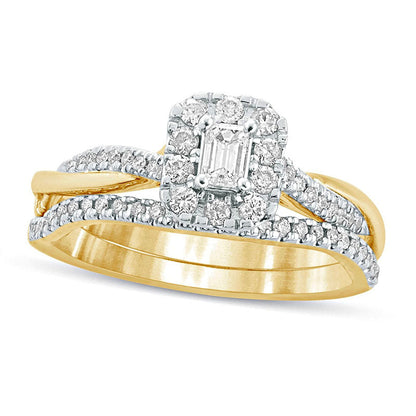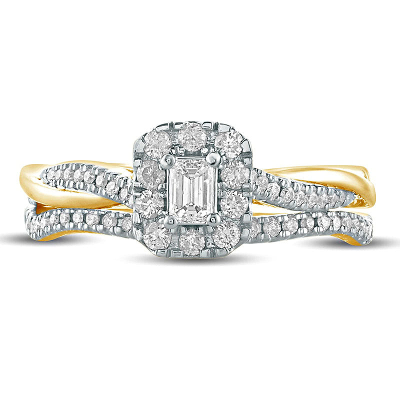 0.50 CT. T.W. Emerald-Cut Natural Diamond Frame Twist Shank Bridal Engagement Ring Set in Solid 10K Yellow Gold