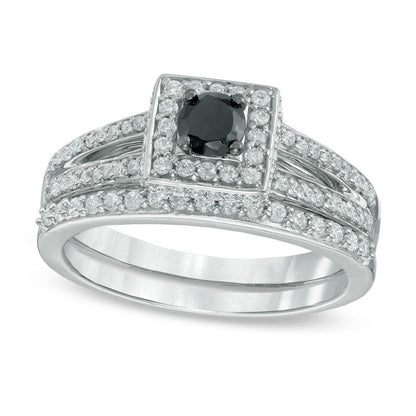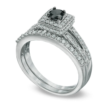 0.50 CT. T.W. Enhanced Black and White Natural Diamond Square Frame Split Shank Bridal Engagement Ring Set in Sterling Silver