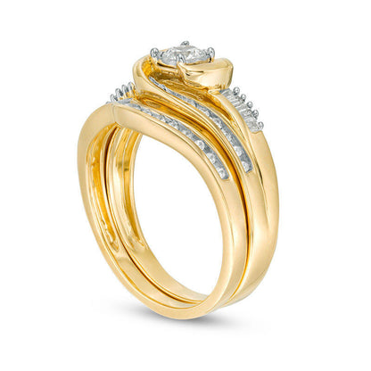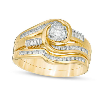 0.50 CT. T.W. Natural Diamond Bypass Swirl Bridal Engagement Ring Set in Solid 10K Yellow Gold