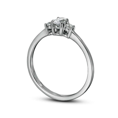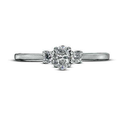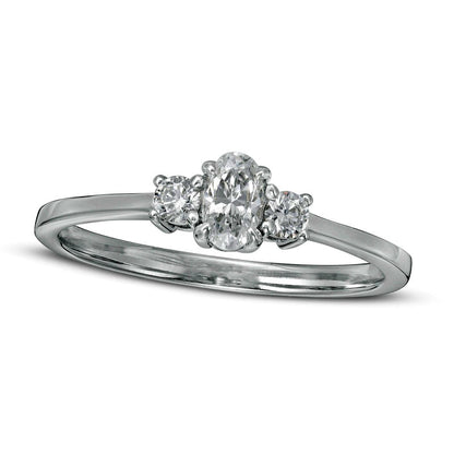 0.50 CT. T.W. Oval and Round Natural Diamond Three Stone Engagement Ring in Solid 14K White Gold