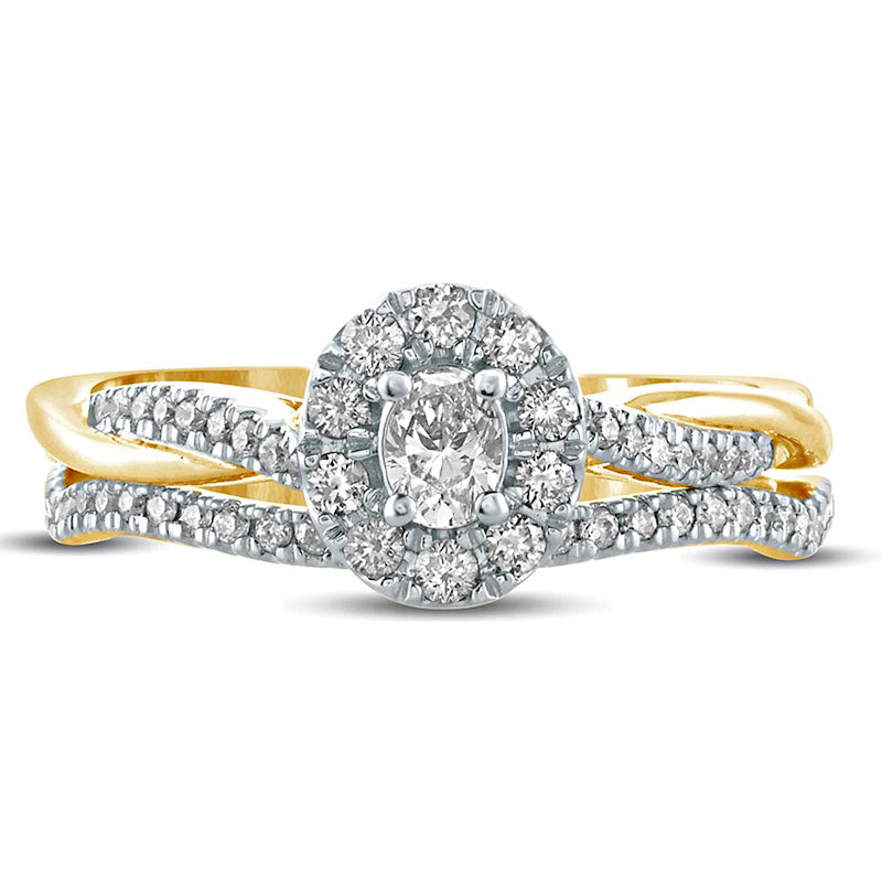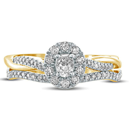 0.50 CT. T.W. Oval Natural Diamond Frame Twist Shank Bridal Engagement Ring Set in Solid 10K Yellow Gold