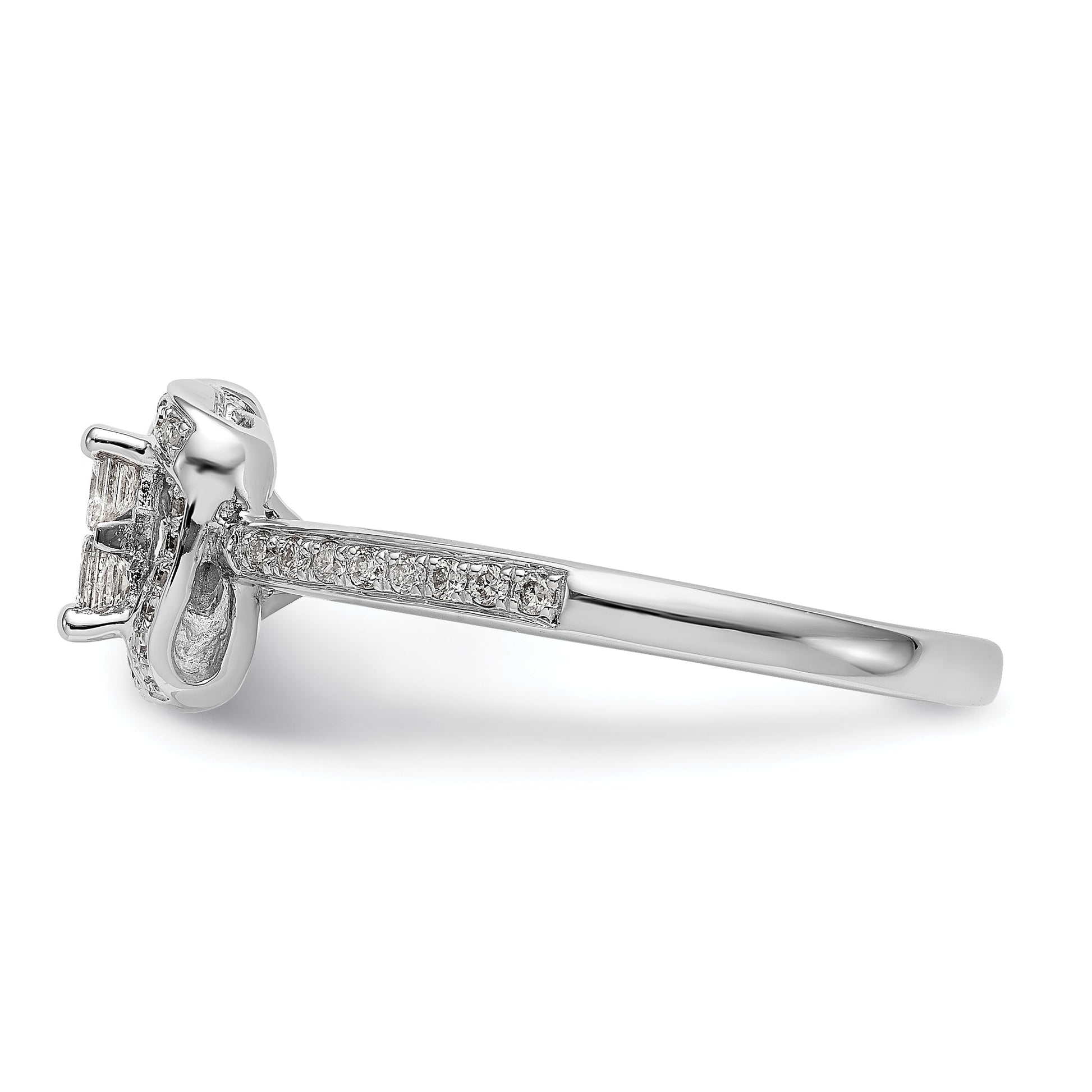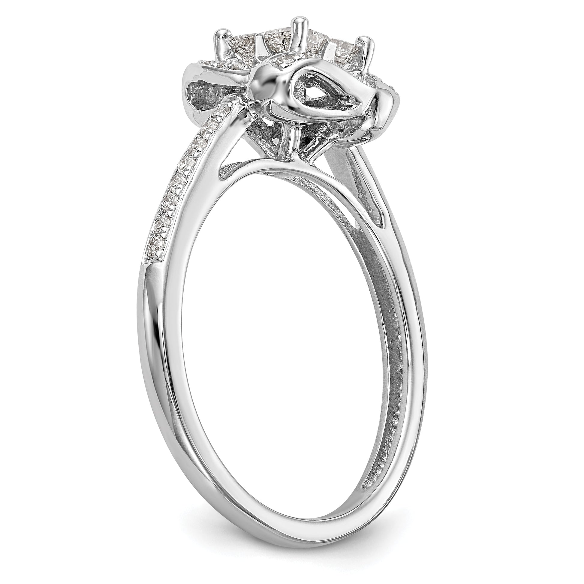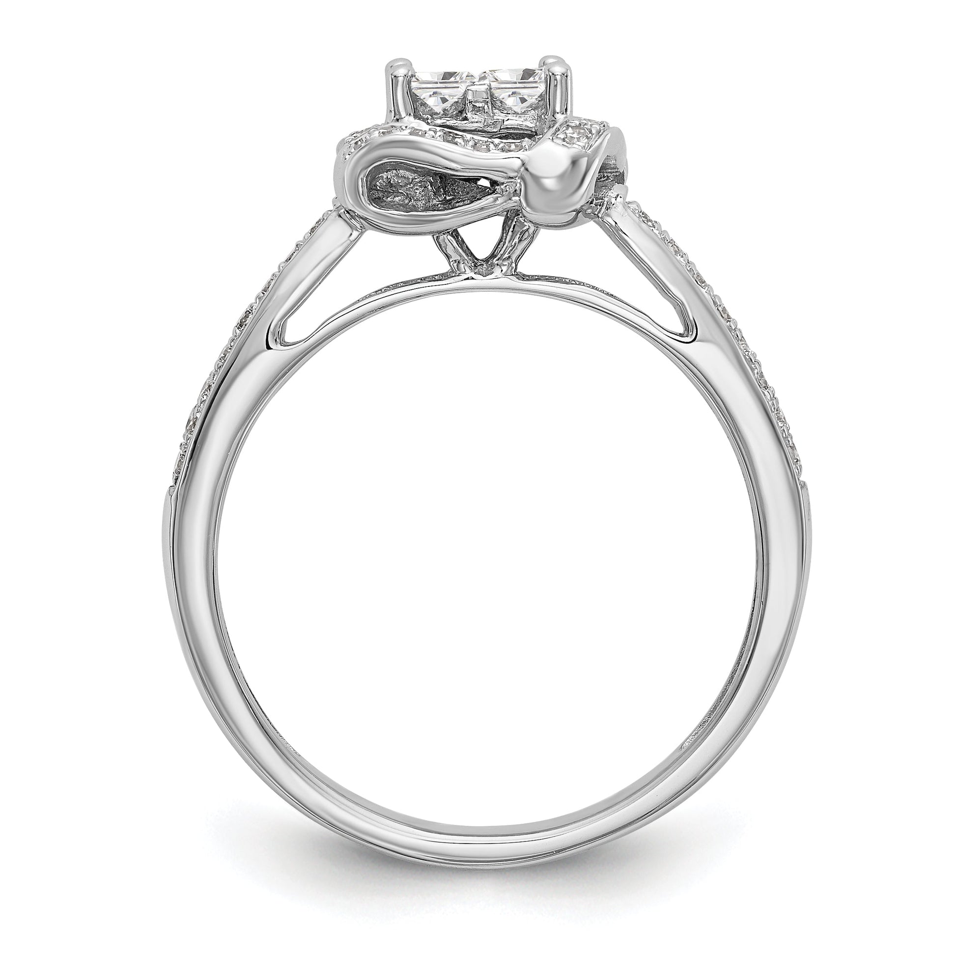 This '0.50ct. CZ Solid Real 14K White Gold Complete Cluster Engagement Ring' is complete with all stones and features 4 square CZ stones, 24 round CZ stones, and 16 additional round CZ stones. The ring is plated with rhodium, has a band width of 2mm and a head height of 8.6mm. It is casted, polished, and comes in sizes ranging from 6 to 8 with an adjustment increment of 0.25. This stunning ring is the perfect choice for those seeking a visually appealing and long-lasting engagement ring with exceptional quality.