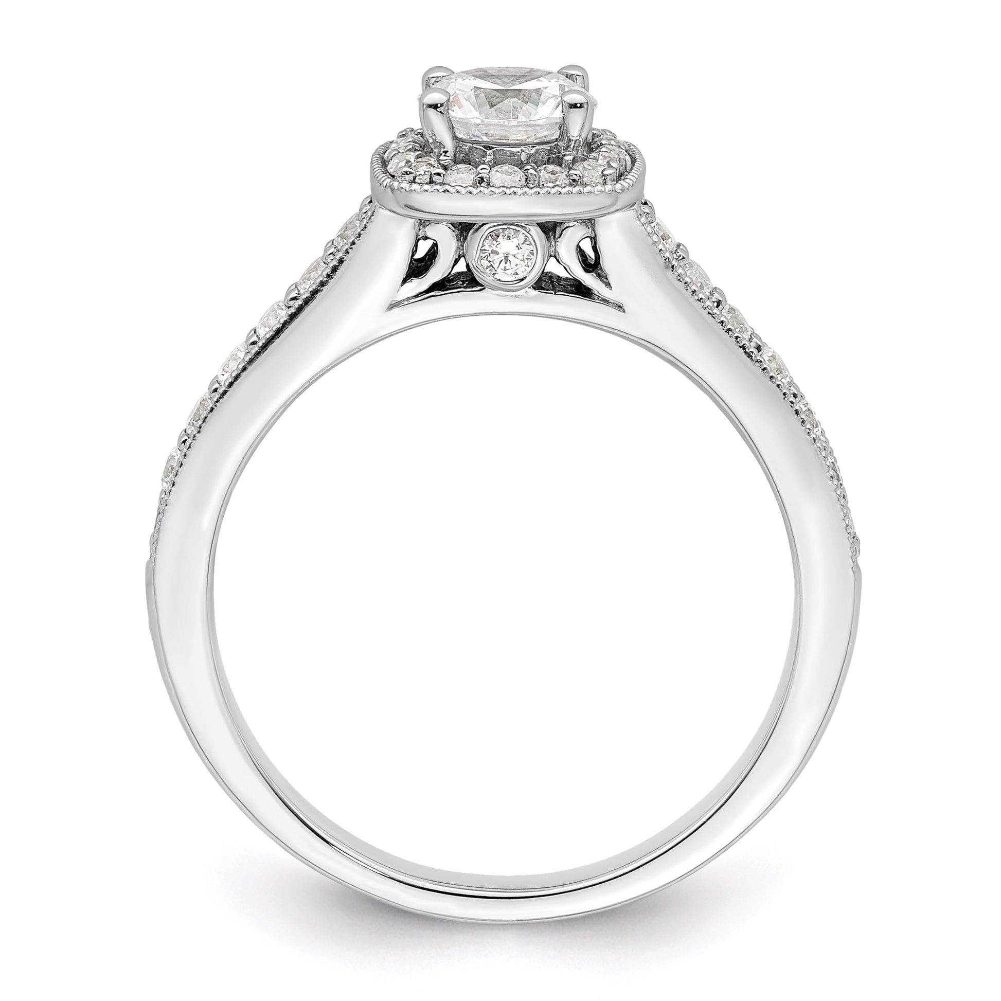 Make a statement with our "0.50ct. CZ Solid Real 14K White Gold Square Halo Round Dia. Engage Ring" and add a touch of elegance to any outfit. Order today and experience the true quality of Goldia rings.