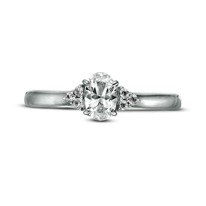 0.63 CT. T.W. Oval Natural Diamond Tri-Sides Engagement Ring in Solid 14K White Gold