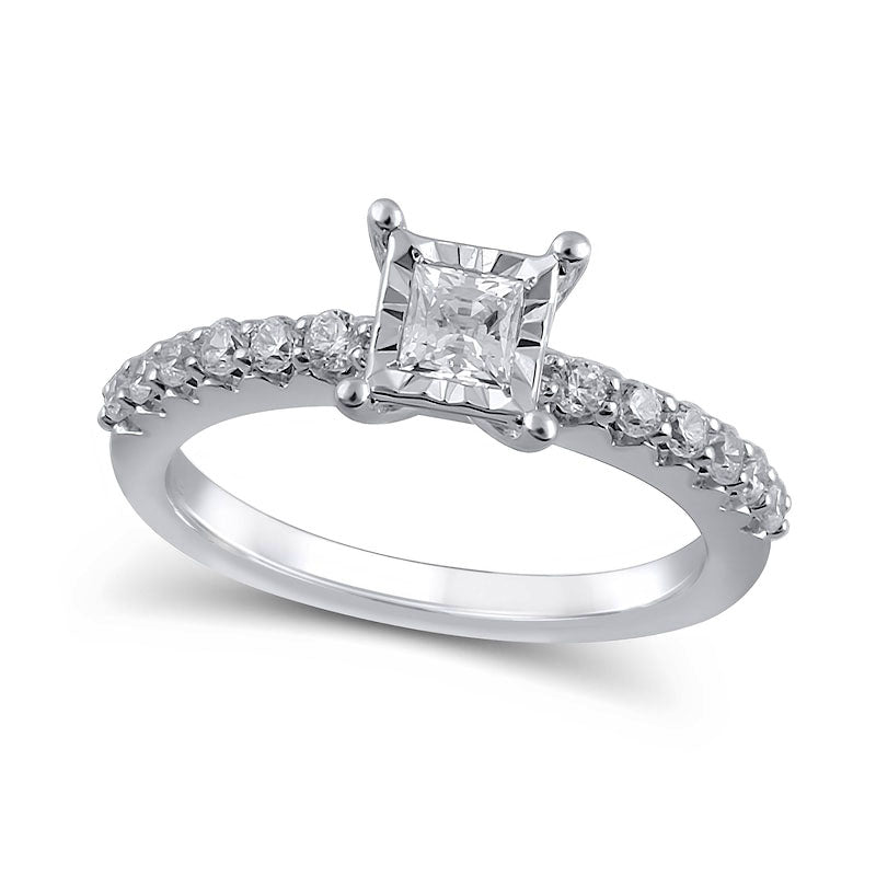 0.63 CT. T.W. Princess-Cut Natural Diamond Engagement Ring in Solid 10K White Gold