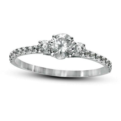 0.75 CT. T.W. Natural Diamond Three Stone Engagement Ring in Solid 14K White Gold