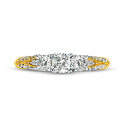 0.75 CT. T.W. Natural Diamond Three Stone V-Sides Antique Vintage-Style Engagement Ring in Solid 10K Yellow Gold