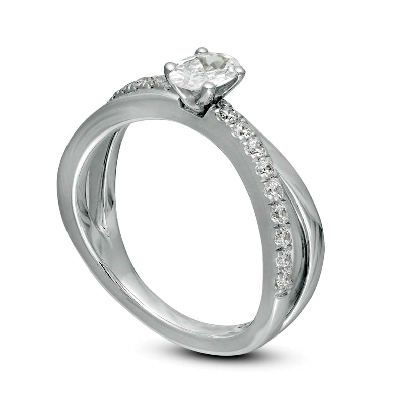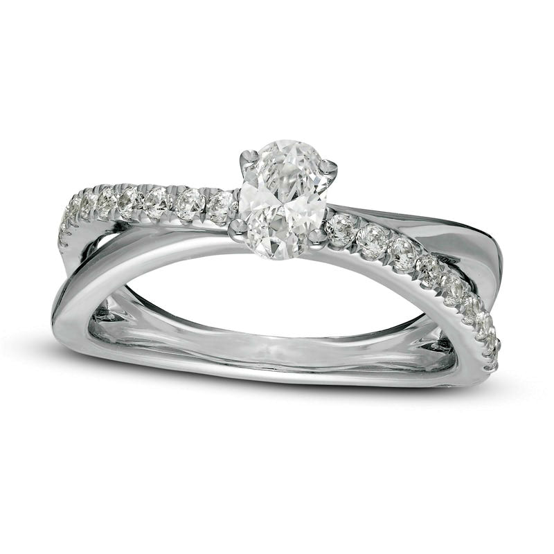 0.75 CT. T.W. Oval Natural Diamond Crossover Engagement Ring in Solid 14K White Gold