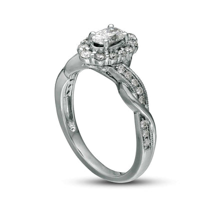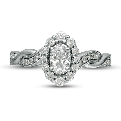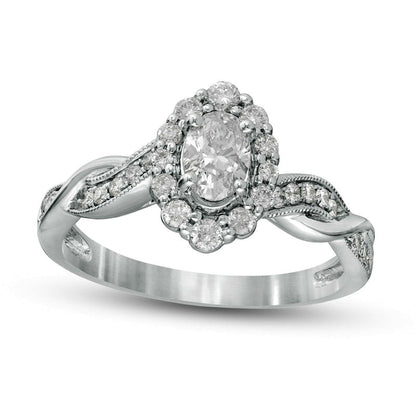 0.75 CT. T.W. Oval Natural Diamond Frame Twist Shank Antique Vintage-Style Engagement Ring in Solid 10K White Gold