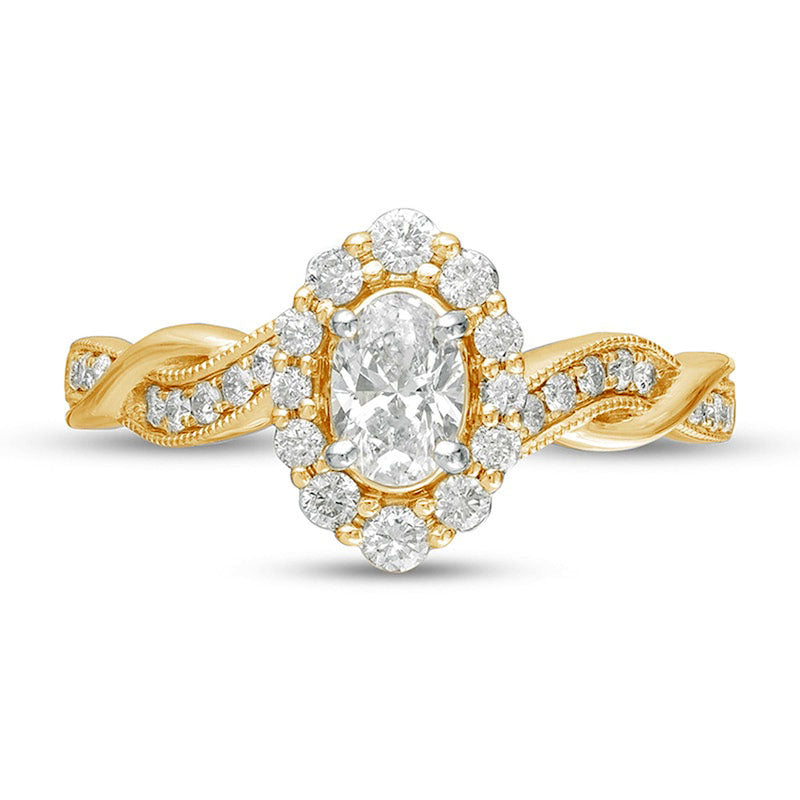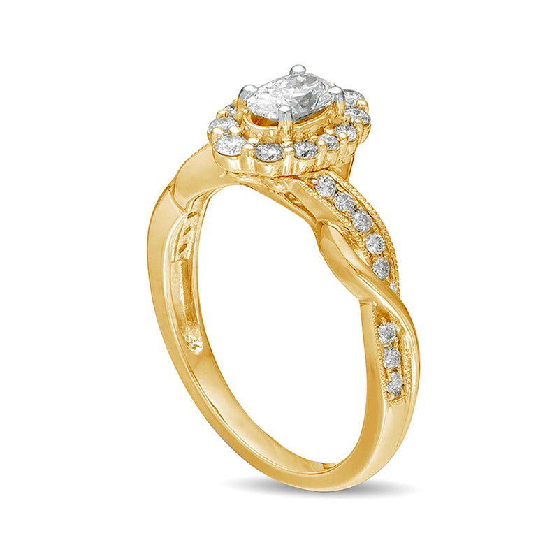 0.75 CT. T.W. Oval Natural Diamond Frame Twist Shank Antique Vintage-Style Engagement Ring in Solid 10K Yellow Gold