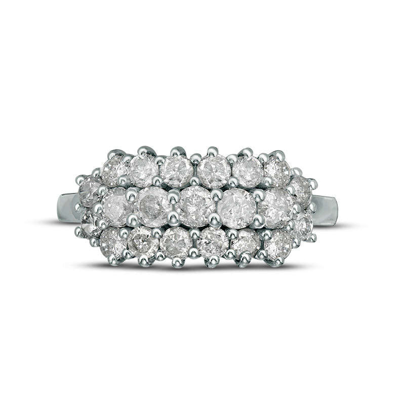 1.25 CT. T.W. Natural Diamond Multi-Row Ring in Solid 10K White Gold