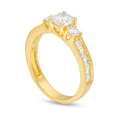 1.25 CT. T.W. Natural Diamond Three Stone Engagement Ring in Solid 14K Gold