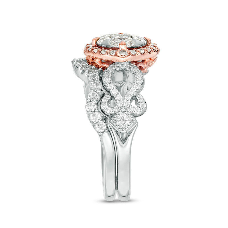 1.25 CT. T.W. Natural Diamond Tilted Cushion Frame Antique Vintage-Style Bridal Engagement Ring Set in Solid 10K Two-Tone Gold