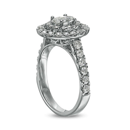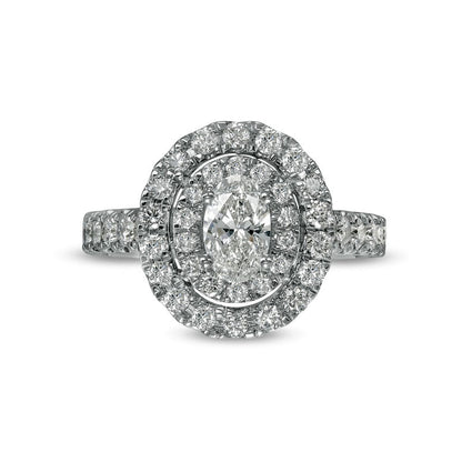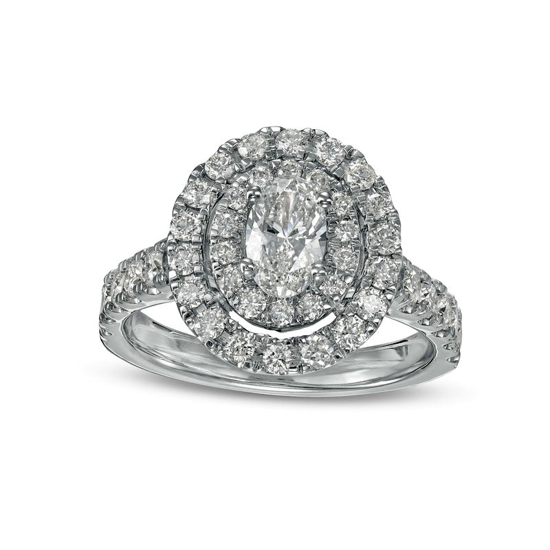 1.5 CT. T.W. Oval Natural Diamond Double Frame Engagement Ring in Solid 14K White Gold (I/SI2)