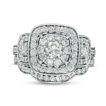 1.63 CT. T.W. Natural Diamond Three Stone Cushion Frame Bridal Engagement Ring Set in Solid 10K White Gold