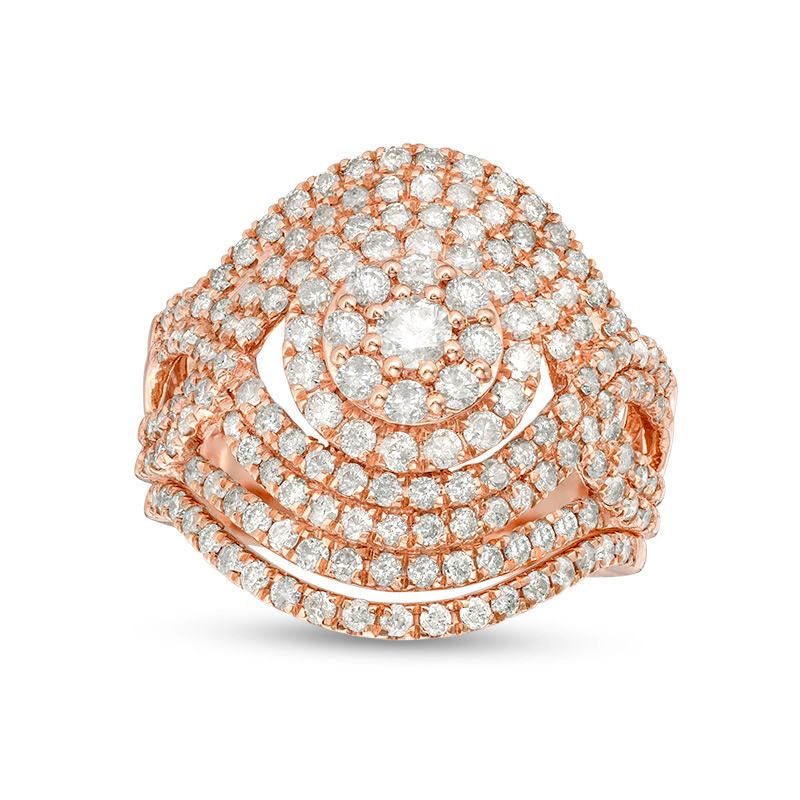 1.75 CT. T.W. Natural Diamond Double Frame Crossover Bridal Engagement Ring Set in Solid 10K Rose Gold
