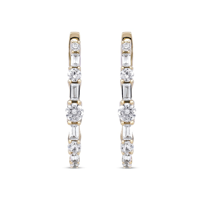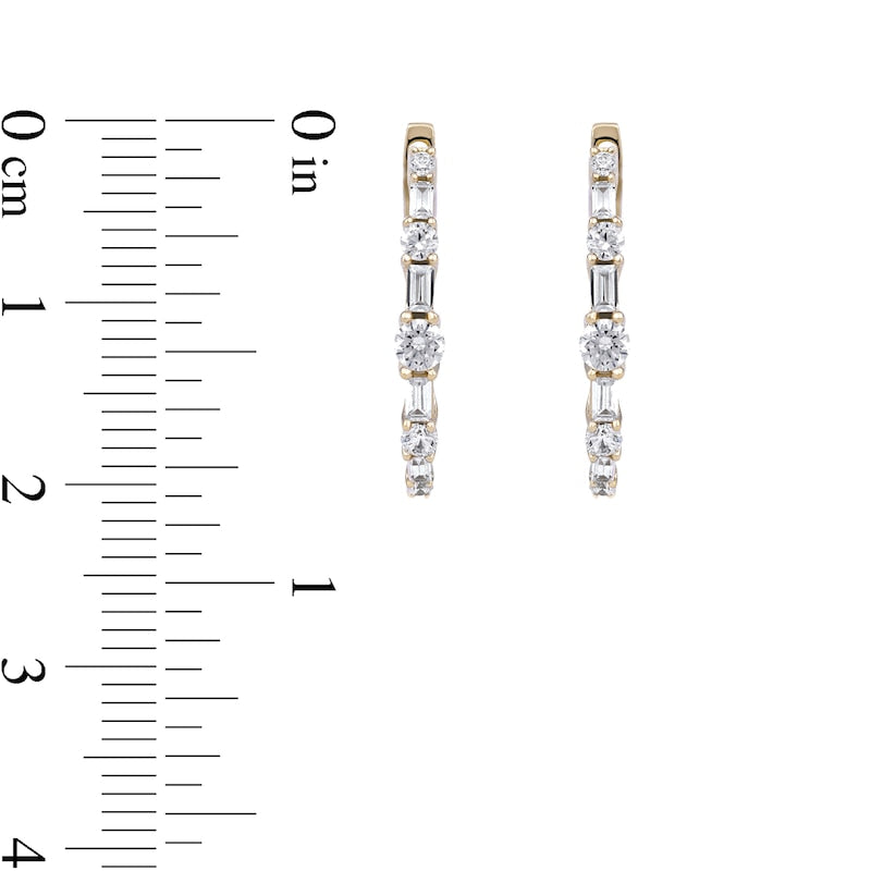 1 CT. T.W. Baguette and Round Diamond Alternating Oval Hoop Earrings in 10K Gold