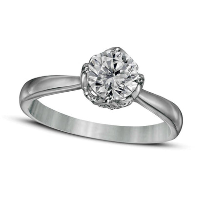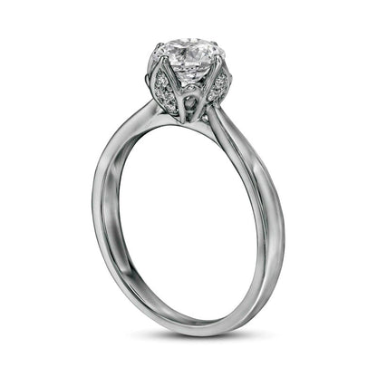 1.0 CT. T.W. Certified Natural Diamond Scallop Frame Floral Engagement Ring in Solid 14K White Gold (I/I2)