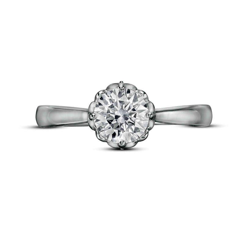 This is a gorgeous 14K white gold engagement ring with a flower-inspired setting, featuring a certified 1 carat diamond with a grade of I for color and I2 for clarity....
