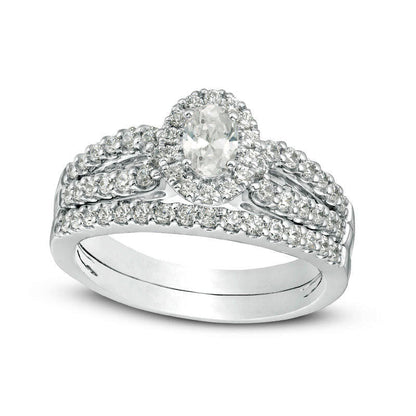 1.0 CT. T.W. Certified Oval Natural Diamond Frame Split Shank Bridal Engagement Ring Set in Solid 14K White Gold (I/I1)