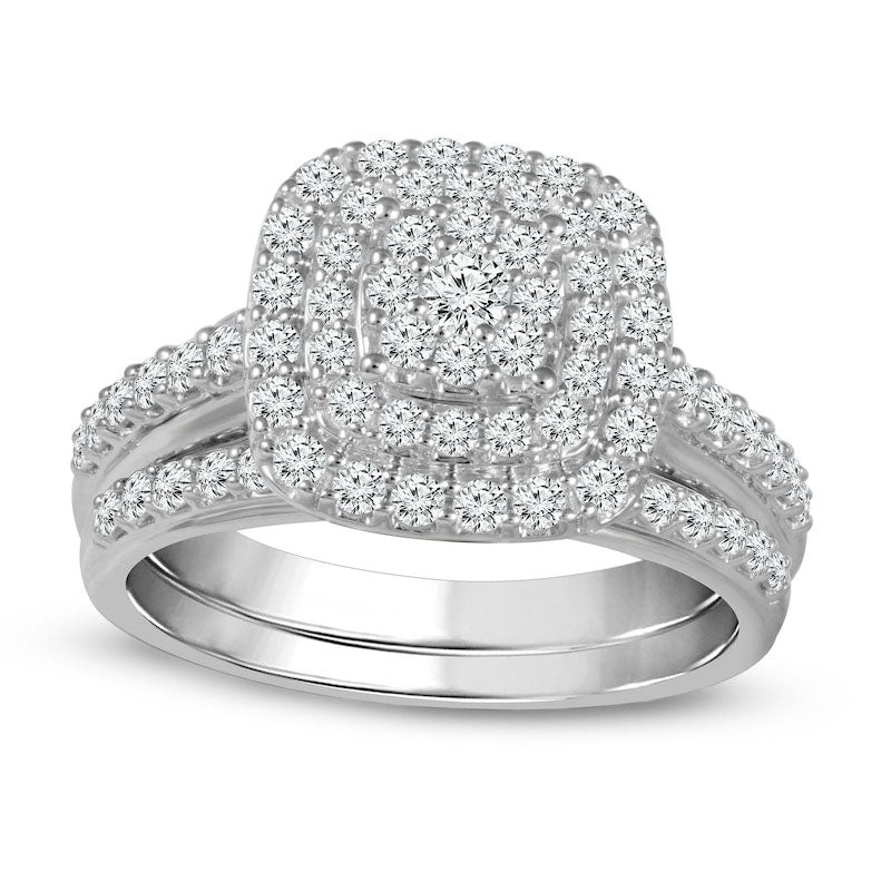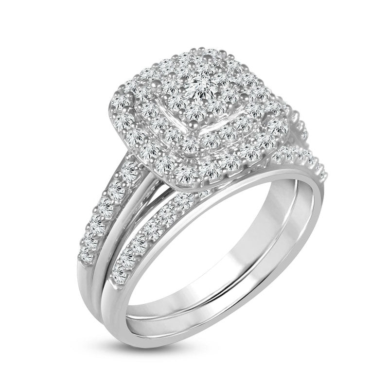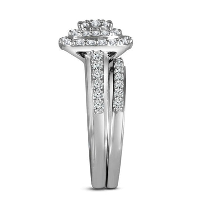 1.0 CT. T.W. Composite Natural Diamond Double Cushion Frame Bridal Engagement Ring Set in Solid 10K White Gold