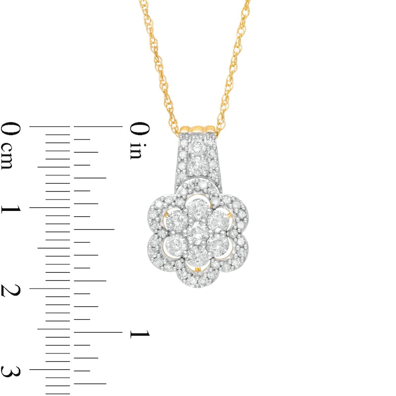 1 CT. T.W. Composite Natural Diamond Flower Frame Drop Pendant in 10K Yellow Gold
