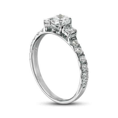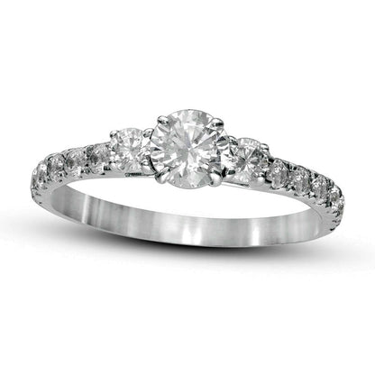 1.0 CT. T.W. Natural Diamond Three Stone Engagement Ring in Solid 14K White Gold
