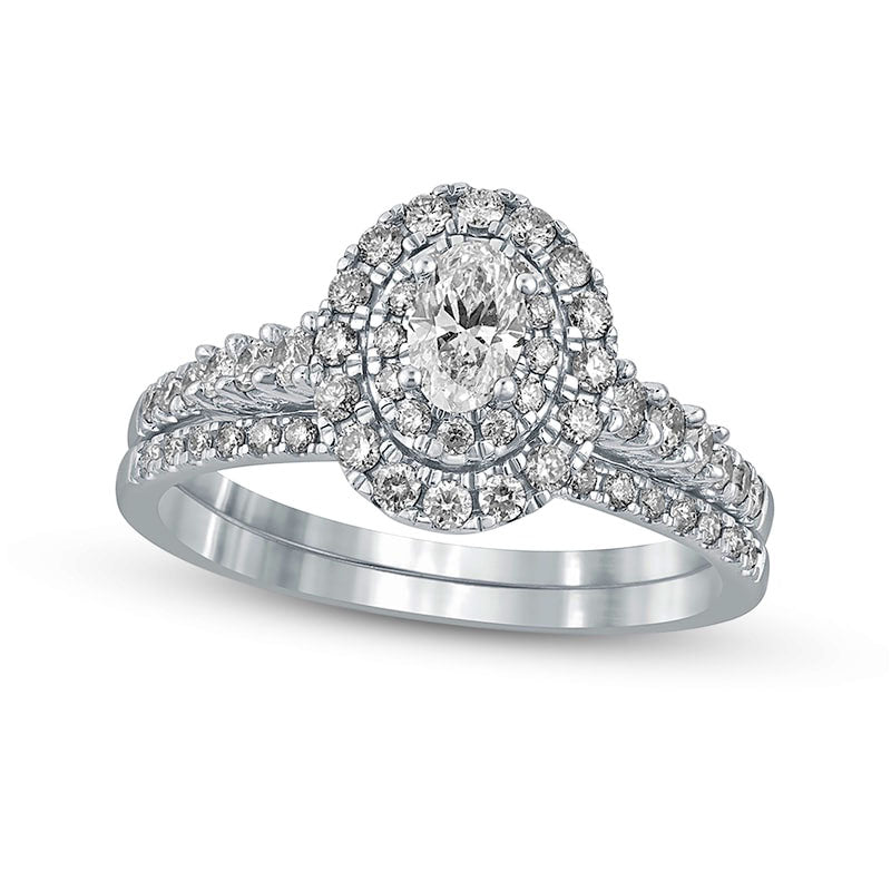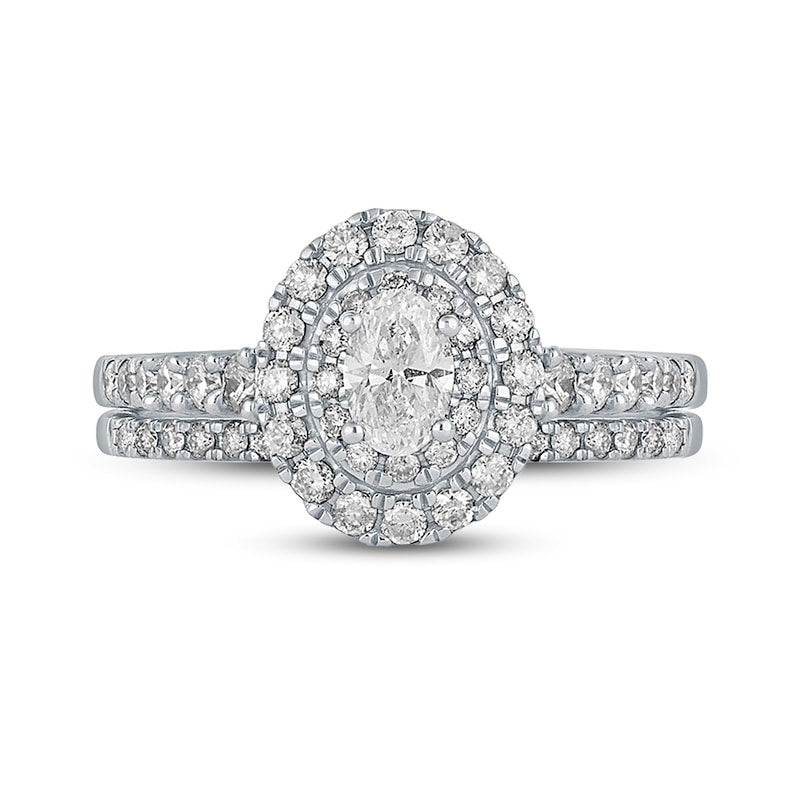 1.0 CT. T.W. Oval Natural Diamond Frame Bridal Engagement Ring Set in Solid 10K White Gold