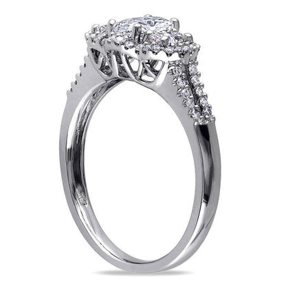 Introducing an exquisite and unparalleled diamond engagement ring that is guaranteed to leave her spellbound. Crafted with pure 14K white gold, this ring boasts a triple set of luminous oval-shaped...
