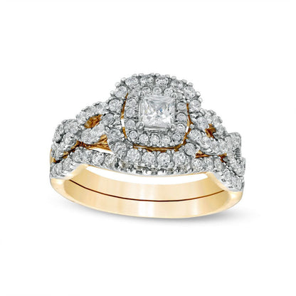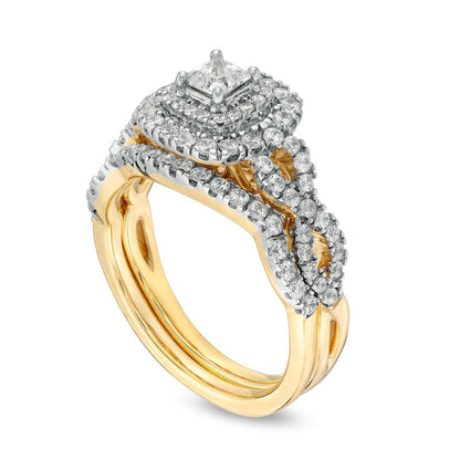 1.0 CT. T.W. Princess-Cut Natural Diamond Double Frame Twist Shank Bridal Engagement Ring Set in Solid 14K Gold