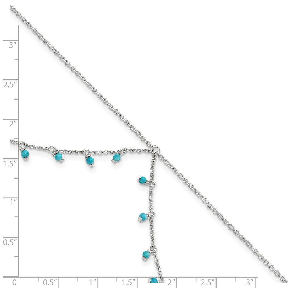 10 Inch Sterling Silver Turquoise Beads Double Chain Anklet