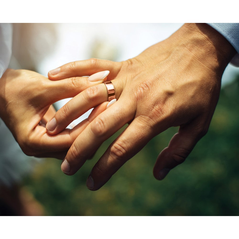 The 10k Rose Gold Lightweight Flat Wedding Band is a stunning choice for couples looking to express their love. Crafted from high-quality 10k rose gold, this band shines with a polished finish. Its flat profile and 6mm width create a classic and modern look, perfect for both men and women. This wedding band is not only solid and durable but also engravable, allowing you to add a personal touch. The comfortable fit makes it ideal for daily wear. Make a lasting statement with the 10k Rose Gold Lightweight Flat Wedding Band, an elegant symbol of your commitment.