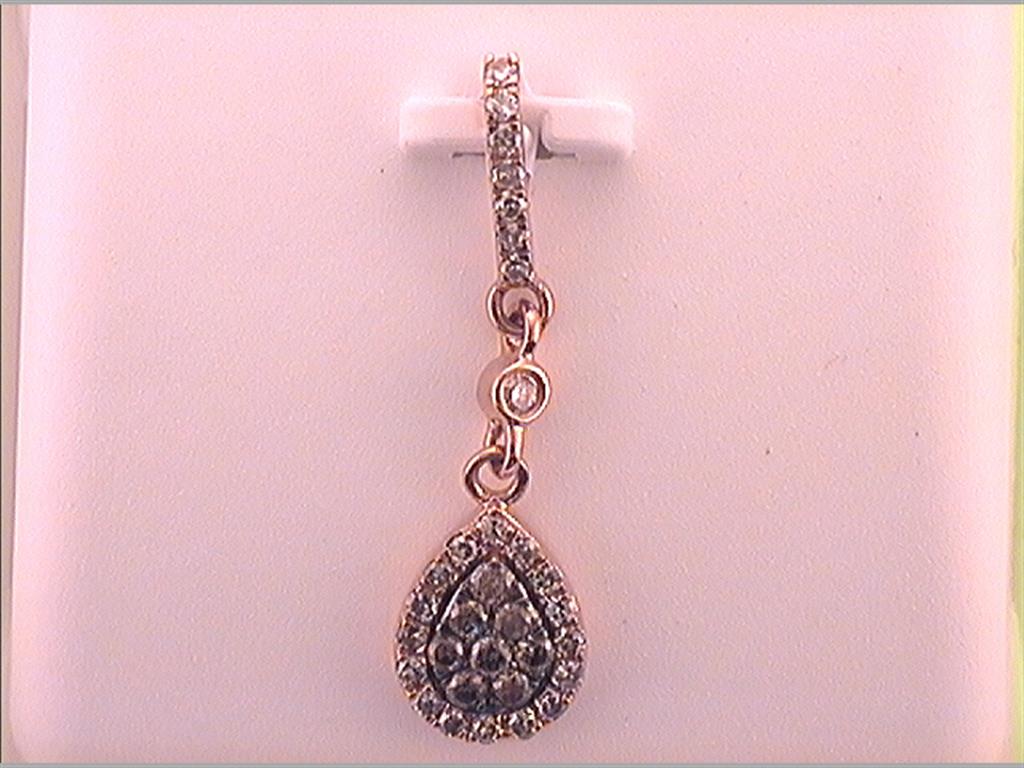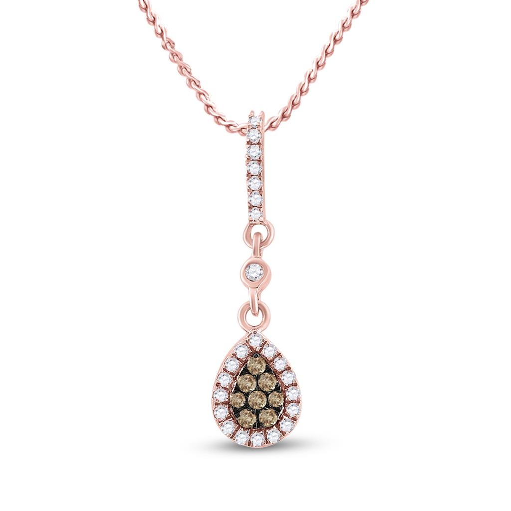 10k Rose Gold Round Brown Diamond Teardrop Pendant 1/3 Cttw