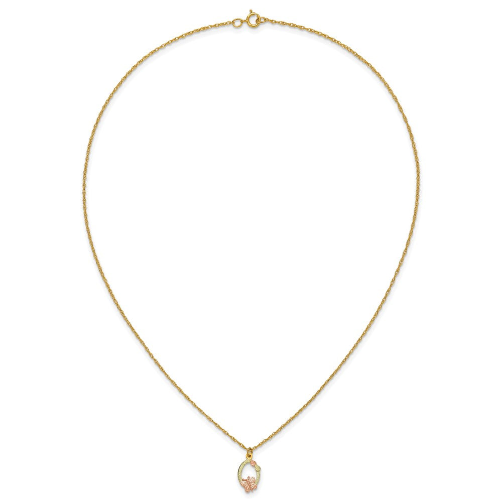 The 10k Tri-Color Black Hills Gold Butterfly Necklace showcases a stunning blend of artistry and elegance. Crafted with polished 10K gold, this necklace features an 18-inch ropa chain that highlights a delicate butterfly charm. The tri-color gold, coupled with diamond-cut texture, adds a unique charm. Its solid construction ensures durability, while the secure spring ring clasp offers peace of mind. Ideal for any occasion, the 10k Tri-Color Black Hills Gold Butterfly Necklace promises to elevate your style with its exquisite design.
