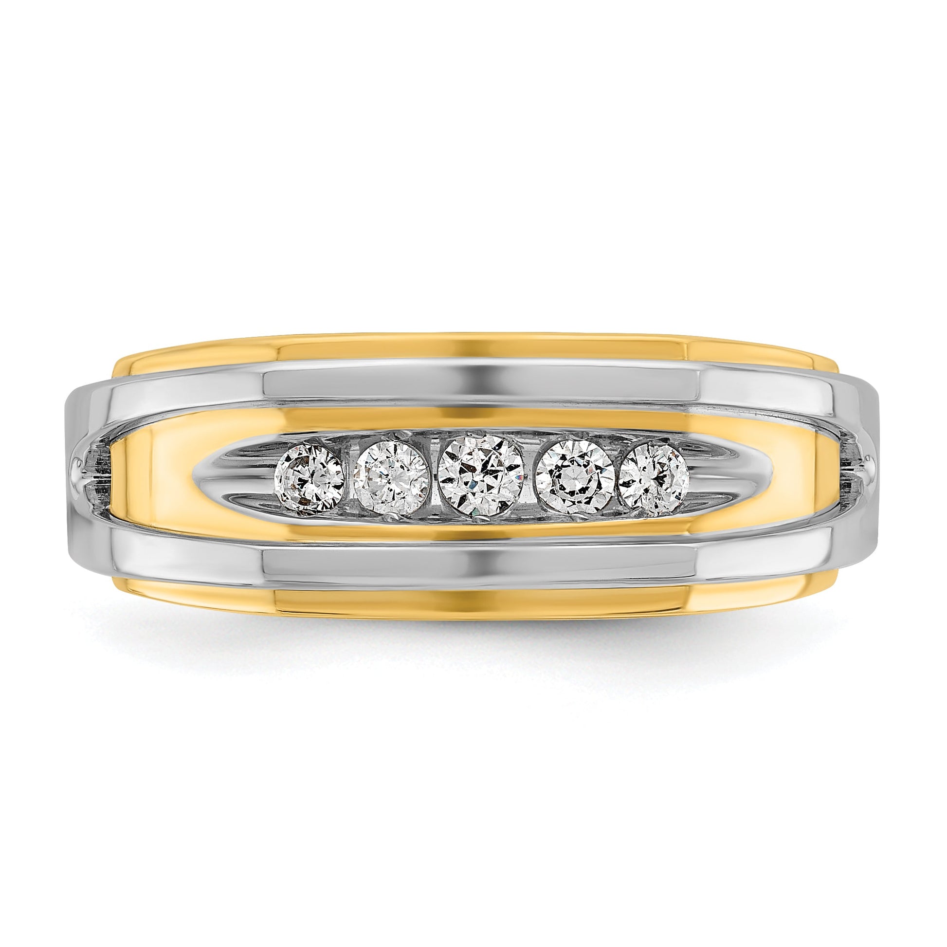Introducing the 10K Two-Tone Ibgoodman Men's Polished 5-Stone Ring Mounting, where timeless style meets modern flair. Crafted with 10K gold, this men's ring shines with its polished finish. The two-tone design adds a unique touch, making it a great choice for any occasion. Its sturdy design ensures durability while maintaining comfort. This ring encapsulates elegance, designed specifically for men who appreciate originality. Give your style upgrade with the 10K Two-Tone Ibgoodman Men's Polished 5-Stone Ring Mounting and make a lasting impression.