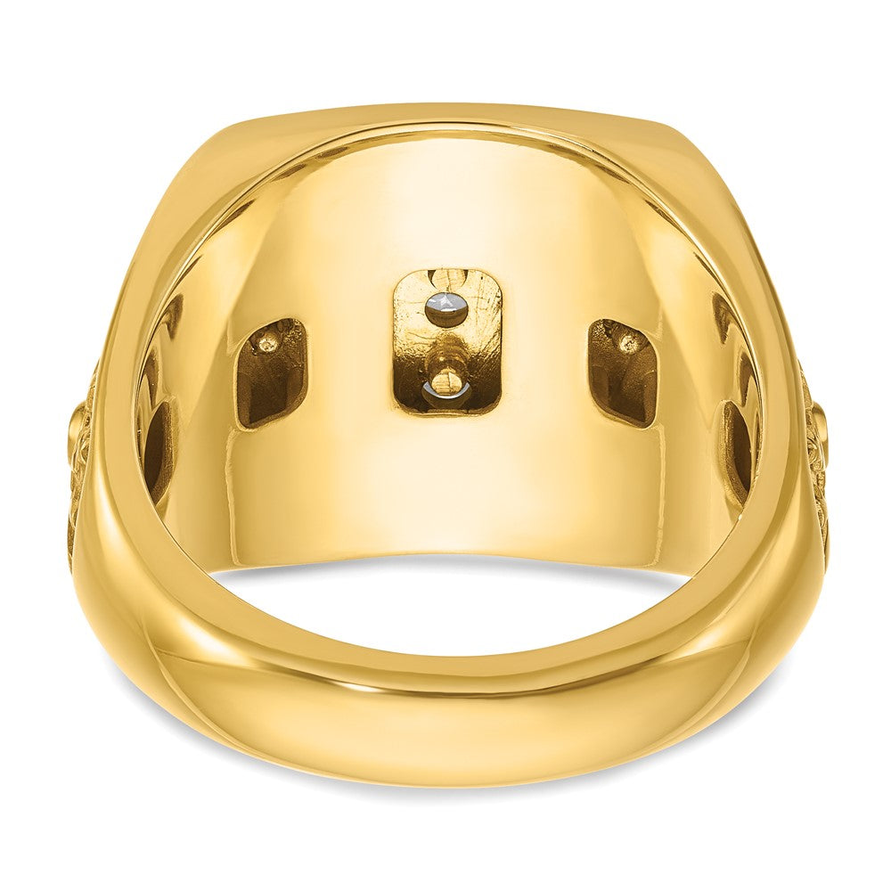 Meet the 10K Two-Tone IBGoodman Men's Polished Textured Ring. This sophisticated piece shines with a blend of elegance and style, making it a standout accessory for any wardrobe. Crafted from 10K gold, it features a dynamic mix of polished and textured finishes, with diamond-cut star and stripe details adding a touch of refined artistry. The two-tone gold complements its intriguing design, creating an eye-catching look. Whether for a business meeting or a night out, this Two-Tone IBGoodman Men's Ring makes a bold statement, offering both class and uniqueness in the same package.