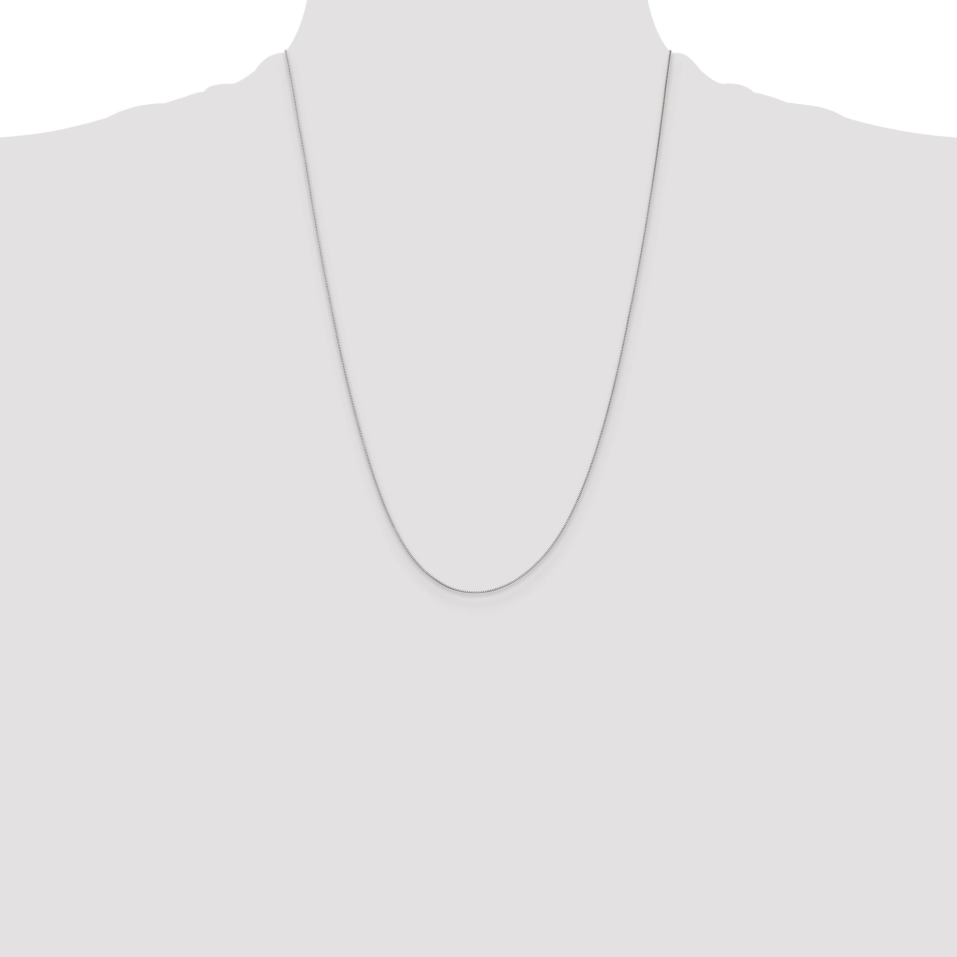 The 10K White Gold .5mm Baby Box Chain is a sleek and simple necklace perfect for everyday wear. Crafted from high-quality 10K white gold, it features a polished finish that adds a soft shine. The 24-inch chain is lightweight and durable, making it comfortable for both men and women. With a secure spring ring clasp, it stays in place all day. This machine-made chain is rhodium plated to resist tarnish and maintain its fresh look. The 10K White Gold .5mm Baby Box Chain is a timeless piece that offers lasting beauty with a lifetime guarantee.